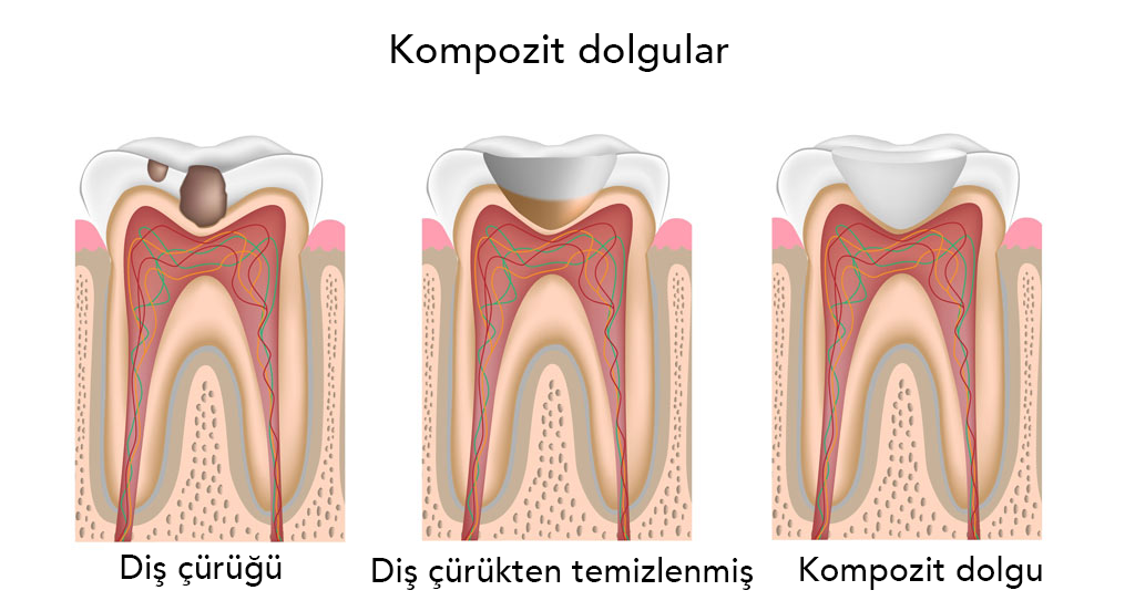 Kompozit dolguların en önemli avantajı estetik olmalarıdır. Kompozit dolgular küçük ve orta büyüklükteki çürük kavitelerinde oldukça başarılı sonuçlar verirken, büyük çürük kavitelerinde bir takım kırılmalar, düşmeler gibi sıkıntılar yaşanabilir. Bu durumda daha ileri restorasyon seçeneklerine geçilebilir.